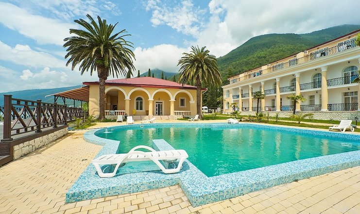 Питание в пансионате осуществляется по системе "шведский стол" в основном ресторане отеля, предлагая блюда русской, итальянской и абхазской кухни, приготовленные из отборных местных продуктов.