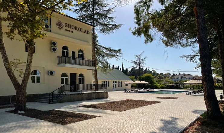 Современное трехэтажное здание отеля "Шоколад" великолепно вписывается в окружающий пейзаж, находясь всего в 250 метрах от берега моря на огороженной территории. Здесь вас ждут уютные номера для двоих и троих гостей, снабженные индивидуальными санузлами с душевыми кабинами и современными сплит-системами. Все номера обставлены стильной мебелью, оборудованы телевизорами, фенами и холодильниками.